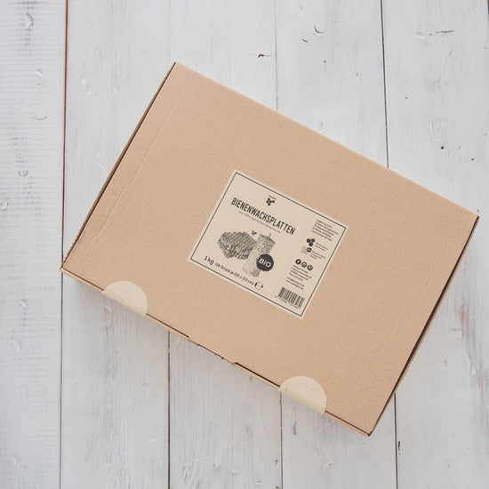 Das Bienenwachs wird in Deutschland gereinigt, analysiert und anschließend zu Platten mit feinem Wabenmuster verarbeitet – hochwertig, stabil und gut formbar.