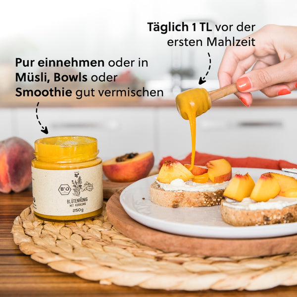 BIO-Sommerblütenhonig trifft die bekannte Kurkuma Wurzel aus Indien